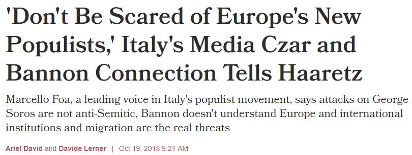 Roma. A meno di un mese dalla sua nomina bis alla guida della Rai (la prima volta a inizio estate era stato bocciato dalla commissione di vigilanza), Marcello Foa accusa il Pd di essere finanziato da George Soros e si fa portavoce dei movimenti populisti europei. Lo fa in un lungo colloquio con il quotidiano israeliano Haaretz. «Non abbiate paura di loro», il messaggio lanciato dal neo presidente Rai. «Non c’è xenofobia nella retorica o nelle azioni di questi leader nei confronti di migranti e rom». Al contrario, l’atteggiamento di sospetto della gente verso i migranti «si basa su una esperienza sociale diretta». Mentre la persecuzione degli ebrei «era basata su una ideologia razzista». «In molti paesi occidentali la gente ritiene di non essere più padrona a casa sua e io penso sia un sentimento legittimo», prosegue Foa. «Ci sono molte organizzazioni internazionali che hanno enormi poteri e nessuno sa nulla di loro, per questo quello che chiamiamo sovranismo è un meccanismo di autodifesa». Sovranismo, argomenta Foa, non significa nazionalismo. «Non c’è l’idea che un Paese si senta superiore agli altri». E il sostegno ai populisti da parte di movimenti razzisti e neonazisti? «Se esprimono sostegno per l’attuale governo italiano lo fanno di loro iniziativa. Non approvo questi estremisti». Poi lancia un’accusa non provata al Pd : un numero enorme» di eurodeputati, fra cui «l’intera delegazione» del Pd, ha ricevuto finanziamenti dal miliardario George Soros, dice Foa basandosi su un presunto report smentito da Roberto Cuillo del Pd. Secondo i dem si tratta di una lista di eurodeputati considerati vicini a Soros che era stata diffusa su una rete di media euroscettici. Secondo Foa gli attacchi contro Soros non possono essere considerati antisemiti perché si basano sulle sue azioni. «Se fosse attaccato in quanto ebreo sarebbe antisemitismo, ma non è quello che accade e ritengo sia offensivo usare l’antisemitismo come alibi per soffocare questo dibattito». Foa, dal canto suo, si dichiara «affine a Israele», ricorda il nonno ebreo e spiega:« Ogni volta che vengo qui riscopro le mie radici». La reazione del Pd è furiosa: David Sassoli, vicepresidente del Parlamento Ue, annuncia querela: «Dovrà rendere conto delle sue parole in tribunale» . «Può un presidente che la legge vuole di garanzia sparare fake news contro la principale forza di opposizione? Forse in Venezuela», dice Andrea Marcucci. «Foa si dimetta, le sue parole sono da Minculpop», gli fa eco il vicepresidente della Vigilanza Francesco Verducci. «Parla come un portavoce del governo», l’accusa di Michele Anzaldi. Idem insistono nella richiesta di controllare i verbali del voto della Vigilanza che ha portato Foa alla guida della Rai: «Tutti sanno che quel voto è illegittimo», dice Marcucci.