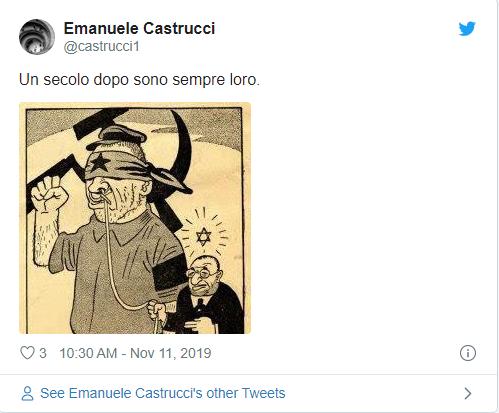 Il suo tweet comprensivo della foto di Adolf Hitler, pubblicato lo scorso 30 novembre, non è il solo ad aver colpito gli animi e alimentato le polemiche rimbalzate dai social network ai giornali nazionali. Il 21 novembre, il professor Castrucci ha pubblicato sempre su Twitter un post relativo ai Protocolli dei Savi di Sion: “Ciò che importa non è sapere chi siano i veri autori del documento, perché potrebbe davvero trattarsi di un ‘falso’ in senso tecnico, ma la domanda: i fatti descritti in esso sono veri o sono falsi? Dal momento che quanto accade oggi nel mondo è la prova evidente che sono veri”. Altre riflessioni e citazioni si trovano scorrendo il profilo del professor Castrucci.