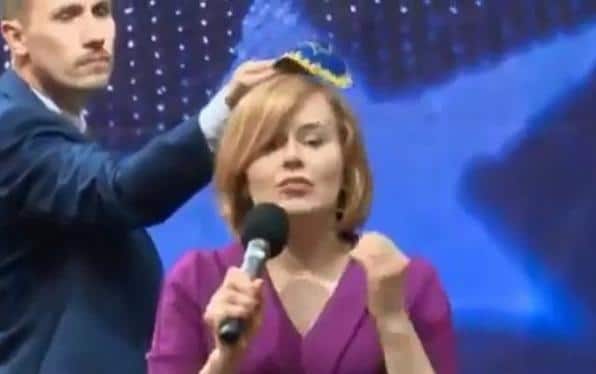 Later, when she got up to speak, a video showed Konrad Berkowicz, another Confederation official, picking up the kippah and holding it above her head.