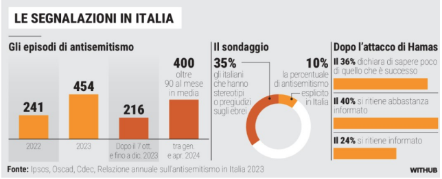 ROMA La senatrice Liliana Segre non si aspettava questa «ondata spaventosa di odio». Dopo il 7 ottobre gli ebrei italiani sono costretti a vivere in un clima ostile, i casi di antisemitismo sono triplicati rispetto al passato. Segre racconta di ricevere «minacce pazzesche», ma le intimidazioni e gli insulti raggiungono tanti cittadini di religione ebraica che «non c’entrano niente con le decisioni politiche di Israele e magari non le condividono», sottolinea la senatrice sopravvissuta ad Auschwitz. Le parole di Segre trovano riscontro nei numeri, come quelli dell’Osservatorio per la sicurezza contro gli atti discriminatori (Oscad) diffusi ieri. Stando ai dati elaborati da associazioni e forze dell’ordine, dal 7 ottobre al 1° maggio l’Oscad conta 345 episodi riconducibili all’antisemitismo, tra cui 41 “hate crimes”, ossia crimini d’odio motivati da un pregiudizio, 175 casi di “hate speech” e 112 di incitamento all’odio online. In questo periodo, ricorda il rapporto presentato al memoriale della Shoah a Milano, si sono svolte 1.378 manifestazioni, di cui 1.109 in solidarietà al popolo palestinese e solo 39 a sostegno dello Stato di Israele. «Dal 7 ottobre abbiamo avuto il 1000% di aumento di segnalazioni di sentimenti d’odio, l’antisemitismo può alimentare forme di terrorismo», dice il ministro dell’Interno Matteo Piantedosi. Mentre Segre confidava tutta la sua amarezza, arrivava alla Fondazione Centro di documentazione ebraica contemporanea, il Cdec, la segnalazione di una scritta choc contro gli ebrei (poi cancellata) sul muro dell’ex galoppatoio del Lido di Venezia: “Vi cercheremo casa per casa e vi sgozzeremo”. «La spaventosa onda antisemita che sta investendo il nostro Paese non viene dal nulla», evidenzia Davide Romano, direttore del Museo della Brigata ebraica di Milano, che aggiunge: «È da ottobre che diciamo di abbassare i toni, ma dal mondo universitario a quello di certi salotti televisivi si continuano a usare parole malate che portano a comportamenti malati. Si susseguono manifestazioni violente dei pro Palestina che dalle università al 25 aprile, passando per le presentazioni di libri, minacciano chi la pensa diversamente». Il Cdec fa sapere che nel 2024, tra gennaio e aprile, gli episodi di antisemitismo catalogati sono 400, oltre 90 in media al mese. Un numero altissimo, se si considera che in tutto il 2023 erano stati 454, il doppio del 2022. Alla fine del 2024, quindi, gli eventi antisemiti noti potrebbero essere oltre il triplo in confronto agli anni pre 7 ottobre. Dati che collimano con il rapporto sull’antisemitismo nel mondo pubblicato dall’Anti-Defamation League, organizzazione con sede a New York. Secondo il centro studi americano la guerra a Gaza ha scatenato uno tsunami di odio contro le comunità ebraiche in tutto il mondo: «Quello che è avvenuto dopo il 7 ottobre ha moltiplicato attacchi da destra e da sinistra contro gli ebrei». La tesi del rapporto è che se continuano le tendenze attuali diventerà impossibile per gli ebrei vivere apertamente in Occidente, indossare la stella di David o frequentare sinagoghe e scuole ebraiche. Anche l’Ugei, l’Unione dei giovani ebrei, dice il vice presidente Ioel Roccas, ha raccolto attraverso una “Hot line” 115 segnalazioni di episodi di antisemitismo tra ottobre e marzo, ben 60 casi solo tra ottobre e novembre, «numeri esorbitanti se confrontati con gli anni precedenti». Roccas condivide le preoccupazioni degli studenti ebrei e israeliani che dal massacro di Hamas e lo scoppio della guerra a Gaza vanno a lezione con paura. «Abbiamo visto sui banchi della aule disegni di svastiche intrecciate a stelle di David e adesivi con il volto di Leila Khaled», esponente storica del Fronte per la liberazione della Palestina che partecipò a due dirottamenti negli Anni 70, e che negli ultimi mesi è stata invitata in diversi atenei. «Ormai slogan come “From the river to the sea” e “Intifada” sono sdoganati. Per noi giovani ebrei è diventato impossibile confrontarci con chi organizza le occupazioni e urla “fuori i sionisti dalle università”. Non c’è dialogo nelle assemblee, c’è una vera e propria censura», continua Roccas che era in piazza il 25 aprile quando il corteo pro palestinese di Roma spostandosi da Porta San Paolo a Centocelle intonava cori «contro i media “servi del sionismo e del capitalismo ebraico». Questa è la settimana in cui si temono nuovi scontri nelle università: Torino, Padova, Roma e Napoli le città più calde. Nelle comunità ebraiche c’è grande inquietudine: oggi è Yom HaAtzmaut, l’anniversario della nascita di Israele, domani il mondo arabo ricorda la Nakba, “la memoria della catastrofe” (l’inizio dell’esodo dei palestinesi nel 1948). «Che cosa succederà? Dobbiamo aver paura di uscire di casa e andare all’università?», si chiede un giovane della comunità romana che preferisce rimanere anonimo. Alla Sapienza, ieri, all’assemblea degli studenti era presente Noura Erakat, docente in studi africani della Rutgers, famosa università del New Jersey. Erakat è intervenuta anche alle proteste della Columbia a New York e in passato ha partecipato a un workshop online con uno dei leader di Hamas, Gazi Hamad. L’Unione dei giovani ebrei italiani risponde lanciando un appello «a rettori, senati accademici e ministeri affinché gli atenei non diventino luogo di censura e intolleranza».