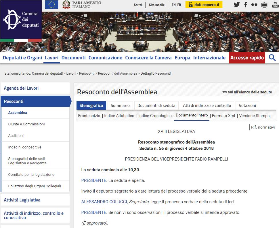 Clicca qui per il resoconto stenografico della seduta
