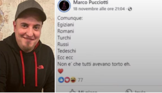 “Comunque: Egiziani, Romani, Turchi, Russi, Tedeschi, ecc. ecc. Non è che tutti avevano torto eh”, il testo pubblicato su Facebook dall’imprenditore romano Marco Pucciotti, proprietario di diversi ristoranti nella Capitale.