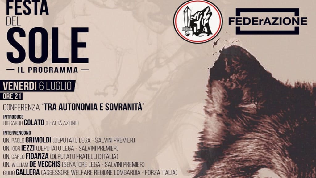 Nel Comune di Abbiategrasso si svolgerà il prossimo 6 e 7 luglio la Festa del Sole, organizzata dal movimento neofascista e antisemita Lealtà e Azione che si ispira al generale nazista delle Waffen SS Leon Degrelle e a Corneliu Codreanu, fondatore della Guardia di ferro rumena, movimento ultranazionalista e antisemita, protagonista di spaventosi pogrom antiebraici negli anni trenta e quaranta. All’iniziativa parteciperanno due assessori della Giunta regionale lombarda, esponenti di primo piano di Forza Italia, di Fratelli d’Italia e numerosi parlamentari della Lega. Come riportato dal Fatto Quotidiano, parteciperanno ai dibattiti due componenti della giunta lombarda: Giulio Gallera, di Forza Italia, e Stefano Bruno Galli, rispettivamente assessori al Welfare e alla Cultura. Oltre a loro ci saranno i parlamentari Igor Iezzi, Paolo Grimoldi, William De Vecchis e Jari Colla (tutti della Lega) e Carlo Fidanza di Fratelli d’Italia, nonché il consigliere regionale lombardo Gianmarco Senna, anche lui leghista e amico di vecchia data del ministro Matteo Salvini. Tra i partecipanti ci sono anche il giornalista de Il Giornale, Giannino Della Frattina, che parlerà di “autonomia e sovranità” e il vice-direttore de La Verità, Francesco Borgonovo, che presenterà il suo ultimo libro. L’evento prevede anche un concerto nazi-rock e tra i gruppi che si esibiranno vi saranno i Bullets, della rete Rac (Rock against communist), gli autori dell’inno di Lealtà Azione in cui si esalta l’antisemita fondatore della Guardia di Ferro romena (“I valori che cerchiamo noi li troviamo in Corneliu Zelea Codreanu“)”. Presenti anche “gli Hobbit di Perugia, che si richiamano alla European brotherhood del suprematismo bianco e i Testudo di Bari, che hanno già partecipato ad iniziative per ricordare la nascita di Hitler e che inneggiano ai “giovani cuori” della Repubblica di Salò“. Tutto ciò avverrà in uno Spazio Comunale, lo spazio Fiera, messo a disposizione dalla giunta di centro-destra. “Si dimostra una volta di più – denuncia l’Osservatorio democratico sulle nuove destre al giornalista del Fatto Quotidiano – come il centrodestra sia tutt’uno con le destre estreme, senza distinzioni, sancendo in Lombardia l’adozione a pieno titolo nei propri ranghi di un gruppo neofascista e i suoi militanti come scherani”.