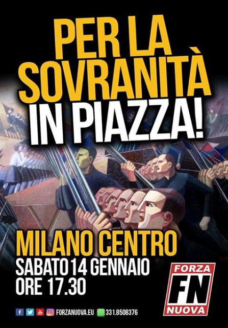 L’immagine della locandina e’ tutto un programma il “Polittico della rivoluzione fascista” di Gerardo Dottori (1934). Il quadro raffigura schiere di militi fascisti con baionette, bandiera nera e fez. Forza Nuova pubblicizza così “Per la sovranità in piazza!”, il corteo nazionale organizzato per sabato 14 (alle 17.30) in centro a Milano. Una manifestazione che, prima ancora di andare in scena, lascia già il segno, sollevando proteste e polemiche. Perché un corteo ispirato alle parate repubblichine interpella le istituzioni, i responsabili delle forze dell’ordine, la politica, i principi della Costituzione e almeno due leggi del nostro ordinamento ( Scelba e Mancino). E, ovviamente, la memoria di Milano, città medaglia d’oro per la Resistenza. Nel giorno in cui Forza Nuova – partito già dichiarato “antisemita” e “nazifascista” da due sentenze della Cassazione ( 2010 e 2011) -lancia la sua iniziativa, parte un appello rivolto – oltre a prefettura e questura – al sindaco Sala: «Intervenga subito e non permetta questa manifestazione, sarebbe uno sfregio per la città». Lo chiedono con forza l’Anpi, il Comitato antifascista lombardo, l’Osservatorio democratico sulle nuove destre, l’Arci e Sel. «Siamo di fronte a un’aperta ed esplicita apologia del fascismo – accusano il Comitato lombardo antifascista e l’Osservatorio sulle nuove destre – l’ennesima provocazione di una formazione nota per il suo carattere nazifascista e l’odio xenofobo e antisemita». Qual’è la “sovranità” a cui fa riferimento Forza Nuova? È la “sovranità” popolare e identitaria da opporre all'”invasione dei profughi”? “Dalle pagine Facebook del partito di Roberto Fiore -è caso di questi giorni – sono state veicolate notizie false e allarmistiche, con accuse ai migranti di essere portatori dei batteri della meningite» – protestano gli antifascisti lombardi. «Forza Nuova da tempo sta cercando un proprio spazio a destra della stessa destra più becera, radicalizzando parole d’ordine soprattutto contro i profughi e i migranti che giungono nel nostro Paese, e seminando odio». Adesso il tentativo di un rilancio nazionale con il corteo a Milano. «Questa manifestazione rappresenterebbe un’offesa a Milano – dice Roberto Cenati, presidente provinciale dell’Anpi -. È un ennesimo episodio provocatorio, particolarmente preoccupante anche perché è previsto proprio a ridosso del giorno della Memoria». Alle prese di posizione contro il risponde lo stesso Fiore affermando che risulta «davvero risibile che l’opposizione alla nostra manifestazione si fondi per lo più su una grafica non gradita. Un contrasto ad un’immagine che fa ben comprendere il vuoto di contenuti degli antagonisti». Il corteo di Forza Nuova sarà preceduto, il giorno prima, da un altro appuntamento voluto dai capi della galassia nera lombarda. Si tratta della rete Skin4skin che il 13 alla Skinhouse di Bollate ha organizzato un concerto di raccolta fondi per Adam Alexander Mossa, 26 anni, ex membro dei Bulldog di Lucca, condannato a 8 anni di carcere in Italia per lesioni e attualmente detenuto in Gran Bretagna (è stato arrestato dopo mesi di latitanza).