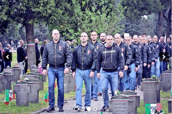 Il vessillo con l’aquila argentea della Repubblica sociale Italiana viene issato al Campo 10 del Cimitero Maggiore. Altre bandiere con simboli e loghi del ventennio fascista su ognuna delle mille croci del «Campo dell’Onore», così ribattezzato dai militanti di Casapound e Lealtà e Azione, gli affiliati agli Hammerskin. Ci sono anche bambini tra i 350 che marciano e fanno il saluto romano. Sono le 10 del 25 Aprile. La cerimonia prosegue senza interruzioni, sotto lo sguardo allibito di molti cittadini.