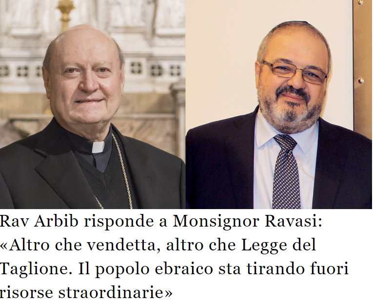 Rav Arbib risponde a Monsignor Ravasi: «Altro che vendetta, altro che Legge del Taglione. Il popolo ebraico sta tirando fuori risorse straordinarie»