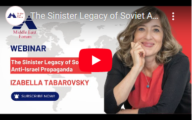 Izabella Tabarovsky, a senior advisor at the Kennan Institute of the Wilson Center and research fellow at the Institute for the Study of Global Antisemitism and Policy (ISGAP), spoke to a May 1st Middle East Forum Webinar (video) about the connection between early antisemitic tropes propagated in the Soviet Union and contemporary anti-Zionist discourse in the U.S. and the West. The following is a summary of her comments: