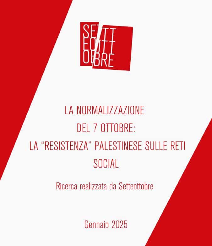 Sono le considerazioni, clamorose e preoccupanti, sul clima che in Italia circonda la comunità ebraica e contenute nella ricerca «La normalizzazione del 7 ottobre/ La “resistenza” palestinese sulle reti sociali» realizzata dall’associazione culturale indipendente e apolitica «Setteottobre», nata in difesa di Israele e dei valori delle democrazie occidentali, presieduta da Stefano Parisi. La documentazione è stata consegnata al ministro dell’Interno Matteo Piantedosi, al Coordinatore nazionale della lotta all’antisemitismo, generale Pasquale Angelosanto, e inviata anche alla presidente della Conferenza dei rettori delle università italiane, Giovanna Iannantuoni, e a tutti i singoli rettori.