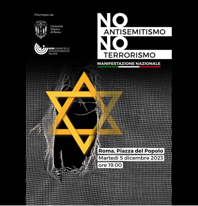 No all’Antisemitismo, no al Terrorismo. Questo è l’appello della Comunità Ebraica di Roma e dell’Unione delle Comunità Ebraiche Italiane, che insieme promuovono la manifestazione nazionale in programma martedì 5 dicembre alle ore 19:00 a Roma, in Piazza del Popolo.