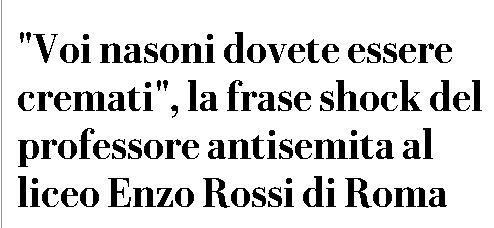 “Voi nasoni dovete essere cremati”, la frase shock del professore antisemita al liceo Enzo Rossi di Roma