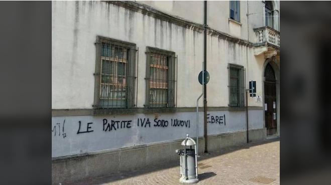 “Le partite Iva sono i nuovi ebrei”, questa la scritta comparsa sui muri del palazzo dell’Agenzia delle Entrate, nella giornata anniversario della Liberazione d’Italia. Ancora ignota l’identità del vandalo, la speranza delle forze dell’ordine è di riuscire ad identificarlo grazie alle telecamere di sorveglianza. Una scritta che è immediatamente rimbalzata sui social raccogliendo pareri contrastanti. Molti i cittadini che hanno valutato il gesto grave e vergognoso, soprattutto perché comparso in una giornata storicamente importante. Altri invece lo hanno difeso, interpretandolo come una metafora della persecuzione degli ebrei o del loro uso come capro espiatorio. “Condanniamo questo gesto e speriamo che le telecamere possano rivelare l’identità di questa persona – ha commentato il sindaco Edoardo Gaffeo -. Il palazzo è privato, dovremo capire come organizzarci per la rimozione”. Sdegno dal segretario della Cisl Samuel Scavazzin: “Difficile infilare tante stupidaggini in così poche parole – dice –. La scritta comparsa si commenterebbe da sola, se non fosse che chiama in causa l’immane tragedia del genocidio del popolo ebraico e merita pertanto una condanna esplicita e senza appello”.