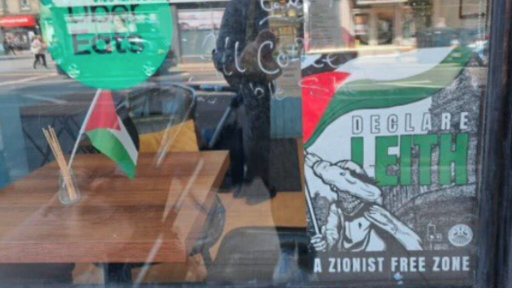A cafe in Edinburgh has declared itself a “Zionist free zone” with a poster in its window warning Zionists to stay away.