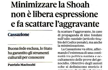 Minimizzare la Shoah non è libera espressione e fa scattare l’aggravante
