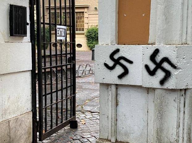 Svastiche sui muri fuori dal Mamiani