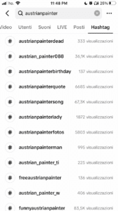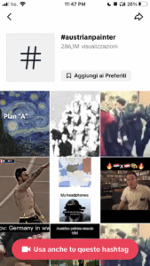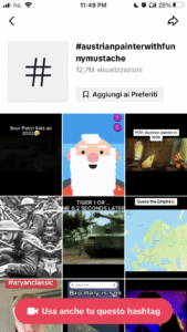 Su TikTok sono presenti diversi hashtag e profili dedicati ad “austrianpainter (pittore austriaco), nome in codice per indicare Adolf Hitler, come appare evidente dai contenuti disponibili sotto gli hashtag e i profili con quel nick name o nome di profilo. L’hashtag #austrianpainter ha quasi 300 milioni di visualizzazioni, #austrianpainter 10 milioni, #austrianpainterwithfunnymustache (pittore austriaco con i baffi buffi) ha 12 milioni, e ce ne sono molti altri disponibili.