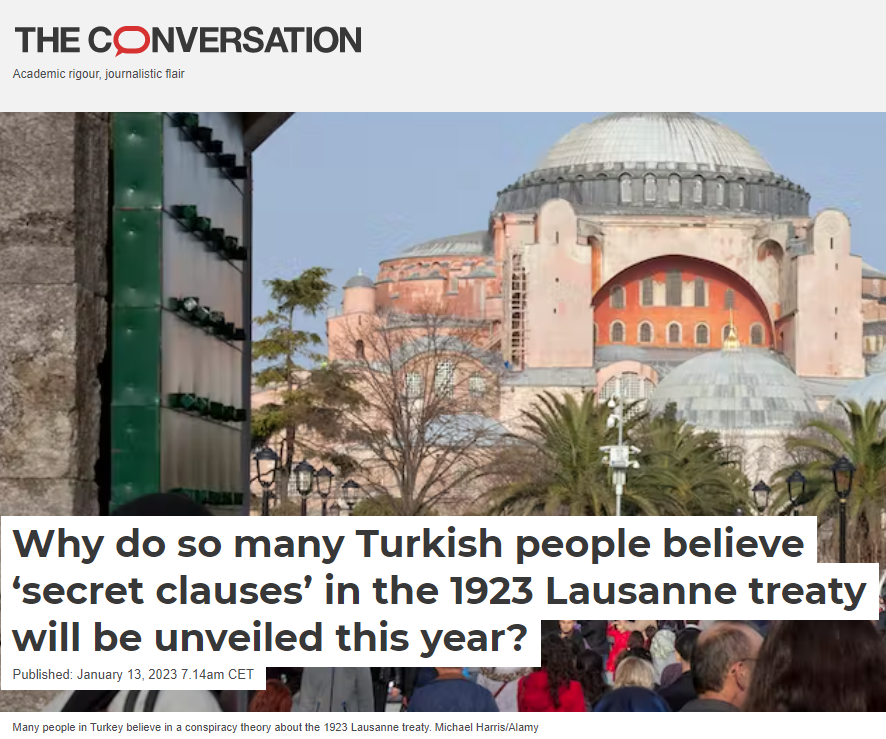 According to recent surveys, just under half of Turkish people, and around 43% of graduates, believe that the 1923 treaty will expire this year and that its alleged “secret articles” will finally be unveiled.