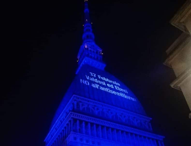 Una scritta a illuminare il luogo simbolo di Torino, la Mole Antonelliana, per dare un messaggio all’intera città. “17 febbraio. Valdesi ed Ebrei. No all’antisemitismo”, lo slogan che capeggiava ieri sulla cupola della Mole. “È stato un modo simbolico per dimostrare la solidarietà tra le due minoranze e per lanciare un segnale a tutti i torinesi: serve la presenza e l’impegno di tutti per combattere l’intolleranza”, sottolinea a Pagine Ebraiche il presidente della Comunità ebraica di Torino Dario Disegni. Una chiamata a raccolta che ha come momento culminante l’iniziativa di questa sera (ore 18.00, piazza Palazzo di città) promossa dal Comune per dimostrare che Torino è in prima fila nella lotta contro il veleno antisemita e contro ogni forma d’odio. “L’antisemitismo non è un problema solo degli ebrei, anzi è soprattutto un problema della società. Per questo ci aspettiamo di vedere oggi in piazza sia singoli che istituzioni di ogni formazione sociale, politica e culturale”, afferma Disegni. Tra chi si è subito mobilitato, la Chiesa protestante. “La collaborazione con i valdesi a Torino è innata, le due comunità si trovano a cento metri di distanza l’una dall’altra, – spiega il presidente della Comunità ebraica – hanno una storia comune di persecuzione, di negazione e poi ottenimento dei diritti: nel 1848 infatti arrivò con i Savoia l’Emancipazione e da alcuni anni abbiamo iniziato a ricordarla congiuntamente, in particolare nella data del 17 febbraio quando fu proclamata per i valdesi. Lo abbiamo fatto non per farne un elemento commemorativo e celebrativo, ma per promuovere ogni anno una riflessione sui diritti civili che coinvolga tutta la città”. Quest’anno, sottolinea Disegni, su iniziative della Chiesa protestante la riflessione è stata affidata al problema dell’antisemitismo.