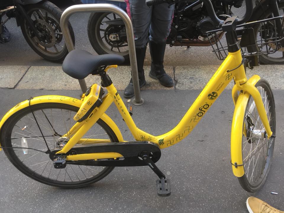 Stampa 18 Ottobre 2017 Vandalismo neonazista Fonte: Testimonianza Bicicletta vandalizzata con svastiche A Milano in Corso Vercelli angolo Via Cimarosa, una OFO Bike Milano è stata vandalizzata con una serie di svastiche.