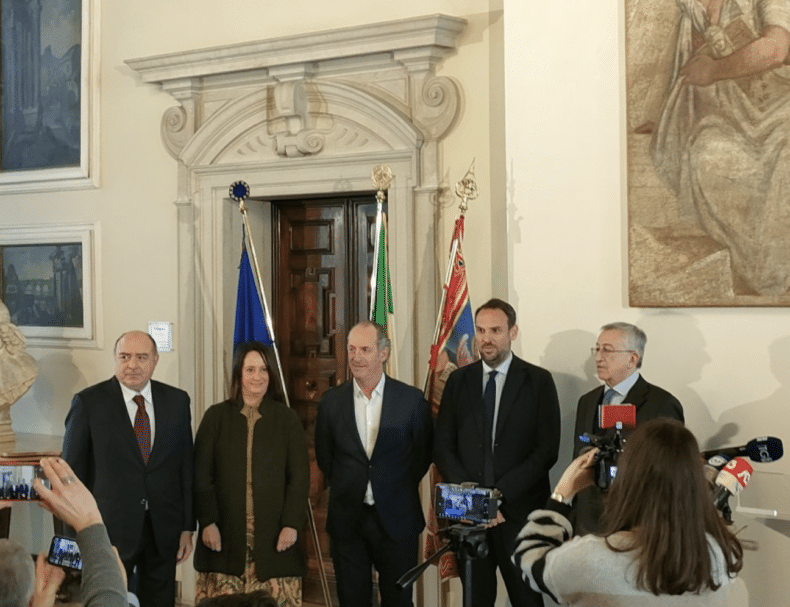 Riprende la definizione operativa dell’International Holocaust Remembrance Alliance il “Manifesto contro l’antisemitismo e contro ogni forma di intolleranza, razzismo ed esclusione” presentato quest’oggi a Venezia, nella sede della Giunta Regionale del Veneto, con l’obiettivo di rafforzare l’impegno delle istituzioni nel contrasto all’odio antiebraico e nella costruzione di nuove piattaforme valoriali e culturali. Temi sui quali si sono soffermati, nel corso di una conferenza stampa a Palazzo Balbi, il presidente del Veneto Luca Zaia, il nuovo coordinatore nazionale nella lotta contro l’antisemitismo Giuseppe Pecoraro e l’assessore al Bilancio UCEI Davide Romanin Jacur. In sala tra gli altri il presidente della Comunità ebraica veneziana Dario Calimani, il vicepresidente Paolo Navarro Dina, il rabbino capo rav Alberto Sermoneta, il presidente della Comunità ebraica padovana Gianni Parenzo, la vicepresidente Gina Cavalieri e il direttore della Fondazione CDEC Gadi Luzzatto Voghera. “Il manifesto si accompagna alla firma di due protocolli d’intesa con ANCI Veneto e Ufficio Scolastico Regionale. Una scelta intrapresa per affermare l’importanza di affrontare questo tema nella scuola, nella società e nelle istituzioni. L’antisemitismo non è una questione del passato” l’osservazione iniziale di Zaia, che ha poi ricordato come proprio il Veneto abbia emanato la prima legge regionale specificamente dedicata alla conoscenza della Shoah e al Giorno della Memoria. Secondo il governatore “il ventre molle è oggi rappresentato dal pericolo diffuso in ambito giovanile” e in particolare dalla rete, che non sarebbe “controllata a sufficienza”.