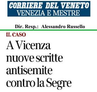 VICENZA Una scritta antisemita in pieno centro e una svastica come firma. Un messaggio d’odio che prende di mira proprio la senatrice a vita a cui Vicenza si appresta a conferire la cittadinanza onoraria, ovvero Liliana Segre. E le reazioni politiche di condanna che arrivano unanimi, da destra a sinistra, dalla Lega all’Anpi (Associazione nazionale partigiani d’Italia) e con il sindaco, Francesco Rucco, che bolla l’episodio come «il gesto di un idiota». «Liliana Segre ai forni»: una frase inquietante accompagnata appunto dal simbolo nazista è comparsa sul muro esterno del condominio al civico 15 di contra’ porta Santa Lucia a Vicenza. Il fatto è stato denunciato venerdì ai carabinieri da un residente, secondo cui la scritta sarebbe stata realizzata nella sera di martedì 25 febbraio, lontano da telecamere. I carabinieri hanno avviato le indagini sulla scritta contro la superstite dell’olocausto e testimone della Shoa italiana, informando al contempo la procura. Il magistrato che prenderà in mano l’informativa vaglierà il reato da ipotizzare, che potrebbe essere l’istigazione all’odio razziale. Proprio nelle prossime settimane in consiglio comunale arriverà la mozione che impegna la giunta ad avviare l’iter per assegnare la cittadinanza onoraria alla senatrice vittima del gesto, che dovrebbe ottenere il via libera dell’aula. Ma il Vicentino non è nuovo a episodi antisemiti: a fine gennaio a Torrebelvicino sulla bacheca della sede del Pd era comparso un volantino con la svastica, stavolta rovescia: «27 gennaio giornata della memoria, ricordiamoci di riaprire i forni: ebrei, rom, sinti, froci, negri, comunisti. Ingresso libero» era il testo riportato nel foglio acquisito dai carabinieri di Schio. E dal mondo politico, memore anche di quei fatti di poco più di un mese fa, arriva una condanna unanime. «I due episodi non sono collegati – afferma Rucco – ma entrambi siano frutto di qualche idiota. La mia solidarietà va alla senatrice Segre e per quanto ci riguarda dobbiamo continuare sulla linea del ricordo di tutte le persone vittime delle atrocità del nazismo e di tutti i totalitarismi». Forte critica anche da parte della Lega: «Gli autori sono degli ignoranti – dice il commissario provinciale Matteo Celebron -. Li obbligherei a un anno di lavori socialmente utili». Durissima l’Anpi: «Sembra che l’odio non abbia più limiti – afferma il segretario cittadino, Luigi Poletto -. Siamo passati dal negazionismo alla rivendicazione della giustezza dello sterminio degli ebrei, un fenomeno orribile».