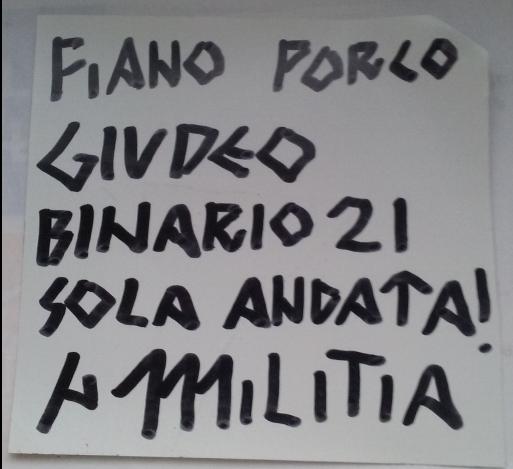 «Fiano porco giudeo binario 21 sola andata! Militia »