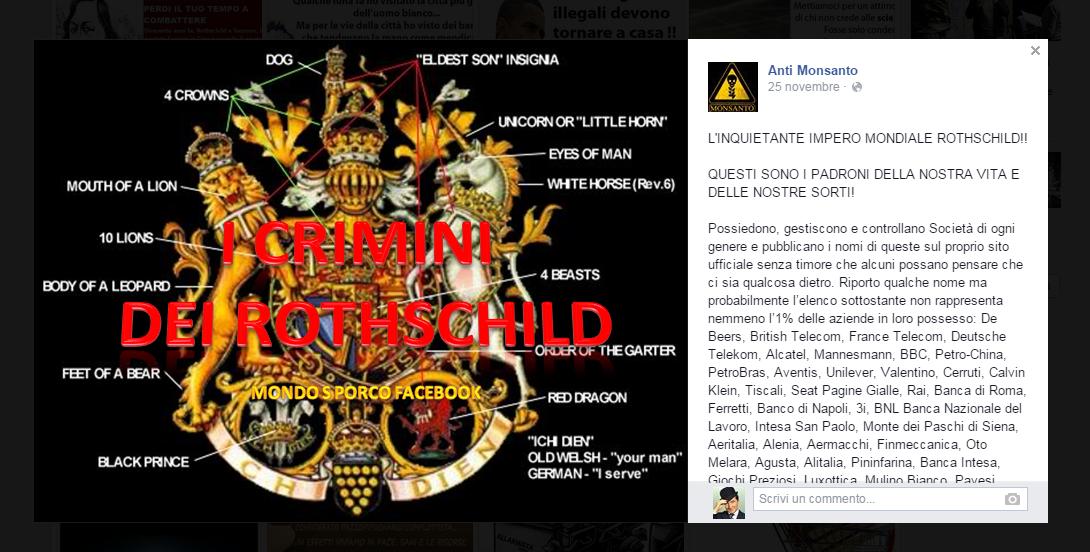 anti_monsanto_crimini_rothschild Pubblicata il 2 Dicembre 2014 alle 1090 × 552 in “Anti Monsanto”, profilo Facebook con documentazione complottista ed antisemita