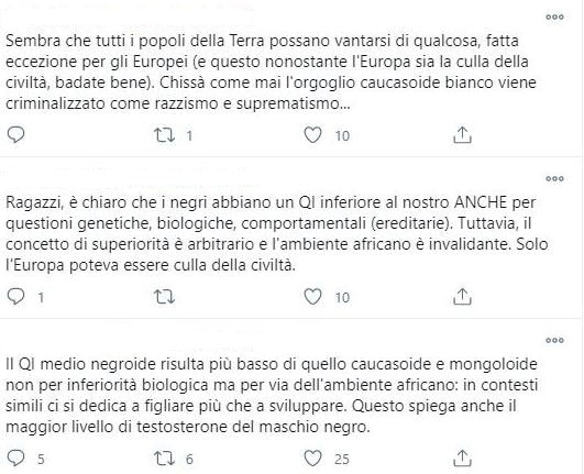 Antisemita già condannato per vilipendio al Presidente della Repubblica pubblica continuamente commenti razzisti, misogini, anti-disabili, omofobi, anti-Islam e antisemiti sui suoi profili social, in particolare Twitter. Malgrado i numerosi reclami inviati al provider questo attivista continua a fare liberamente apologia del più greve razzismo poiché: «non è stata riscontrata alcuna violazione delle regole di Twitter».
