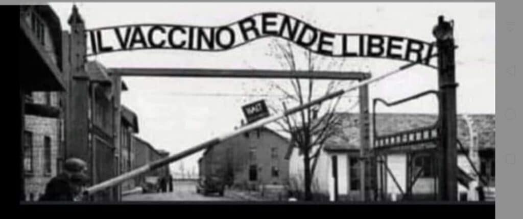 Antivaccinista pubblica sul suo profilo Facebook documentazione complottista e contro le vaccinazioni, tra cui il fotomontaggio dell’entrata di un campo di sterminio nazista con la scritta: «Il vaccino rende liberi».