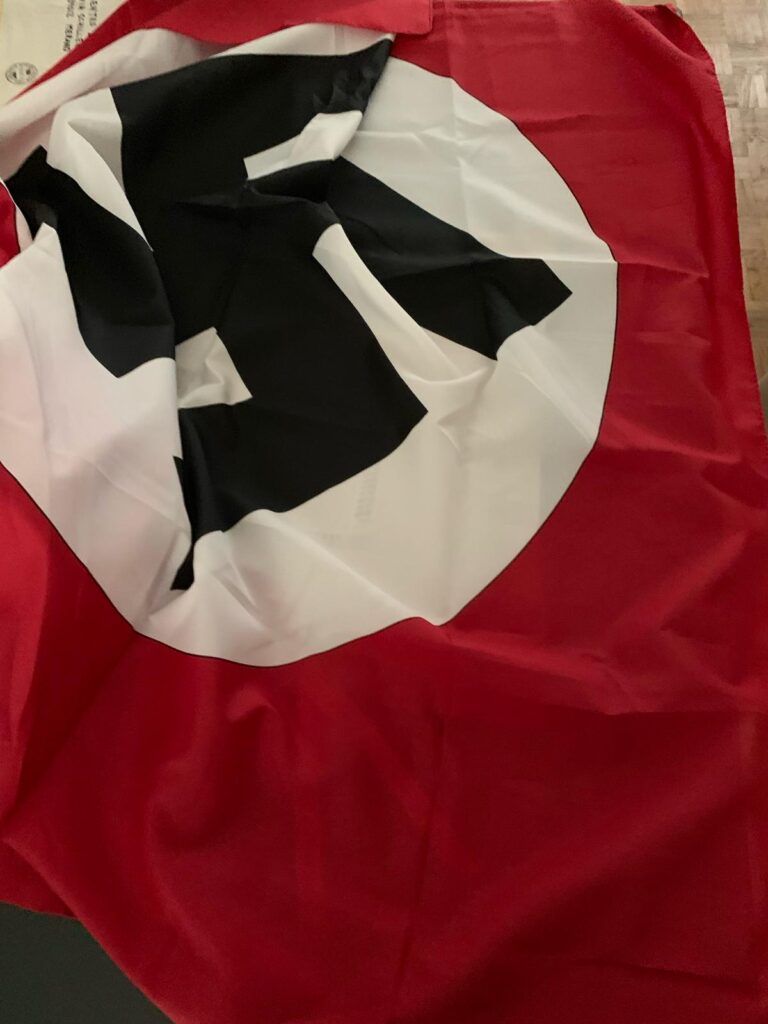 Stampa 9 Aprile 2024 Bandiera nazista inviata a comunità ebraica Luogo: Nord-Italia Fonte: Segnalazione CE Bandiera nazista Presidente di una Comunità ebraica dell’Italia del Nord, riceve una pacco contenente una bandiera nazista