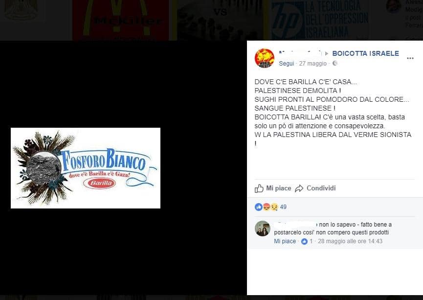 barilla Pubblicata il 25 Settembre 2017 alle 865 × 613 in Boicotta Israele profilo Facebook che demonizza Israele ed il “sionismo”