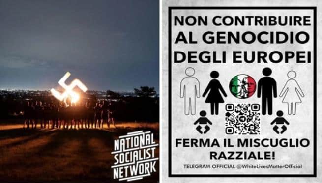 Sempre a Milano, a dicembre 2024, altri dodici giovani tra i 17 e i 24 anni sono indagati per aver diffuso su Telegram contenuti nazisti, fascisti, razzisti e antisemiti. L’operazione “Genus Album”, coordinata dalla Polizia postale lombarda e dalla Digos, ha portato a perquisizioni in otto regioni italiane, con il sequestro di armi, bandiere naziste e copie del Mein Kampf. Nonostante non siano stati compiuti atti violenti, le conversazioni rivelano l’intenzione di “passare all’azione”. La maggior parte degli indagati è composta da studenti universitari. I gruppi Telegram promuovevano ideologie suprematiste e istigavano alla violenza etnica, con l’obiettivo di organizzare azioni nel mondo reale.