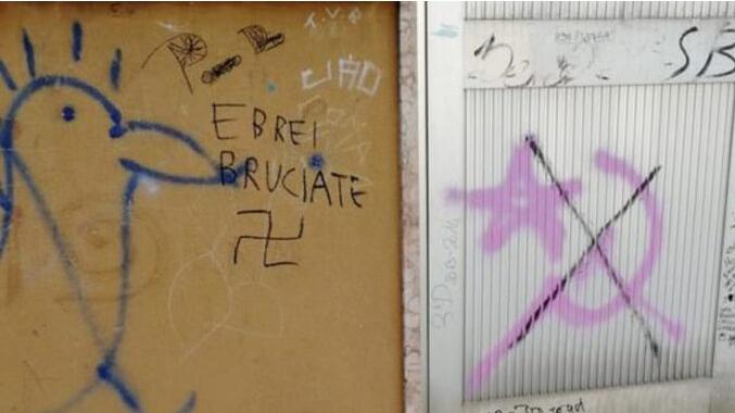 La scritta appare su un muro del plesso che si trova nel quartiere di San Giuseppe, vicino all’ospedale. Affiancata ad un’altra icona che richiama al “secolo breve”, una falce e martello disegnata con lo spray rosso, su cui è stata apposta una “x”, probabilmente dallo stesso supporter dell’opposta ideologia che ha tristemente replicato con la svastica e la scritta antisemita che sporcano il muro della scuola.
