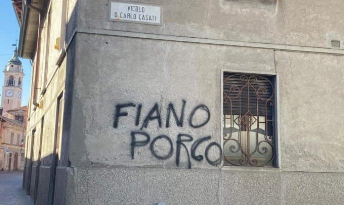 Le scritte sono apparse sabato 26 febbraio prima dell’arrivo di Fiano per il 77esimo anniversario dell’eccidio dei Tre Martiri Castanesi