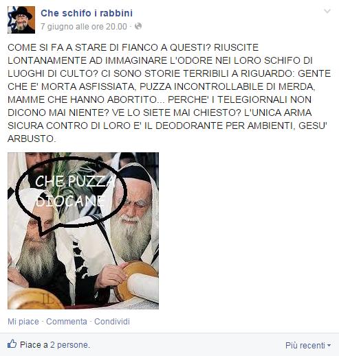 cheschifo_fotomontaggio_puzza Pubblicata il 11 Giugno 2015 alle 493 × 519 in “Che schifo i rabbini”, profilo Facebook antisemita