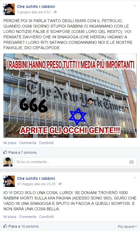 cheschifo_trivialità Pubblicata il 11 Giugno 2015 alle 494 × 813 in “Che schifo i rabbini”, profilo Facebook antisemita