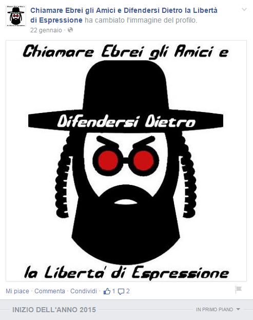 “Chiamare Ebrei gli Amici e Difendersi Dietro la Libertà di Espressione.” è una comunità Facebook creata nel gennaio 2015 che posta regolarmente documenti antisemiti e razzisti: fotomontaggi, vignette, cartoni animati, commenti.