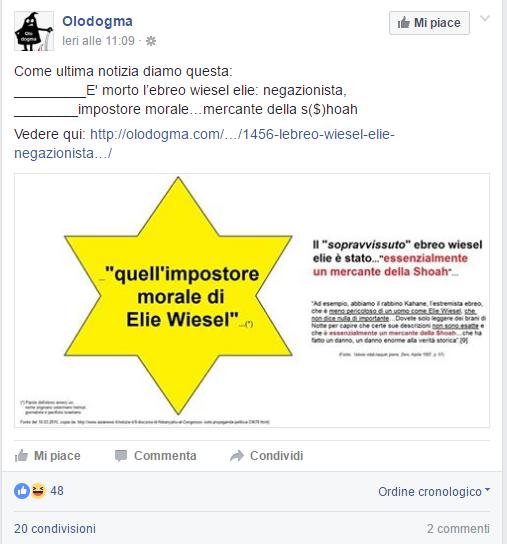 Olodogma_Wiesel_impostore Pubblicata il 5 Luglio 2016 alle 507 × 544 in Commenti antisemiti alla morte di Elie Wiesel