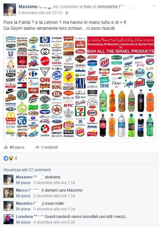giorgi_prodottisionisti Pubblicata il 6 Febbraio 2017 alle 507 × 724 in Commenti antisemiti su Facebook e minacce contro ebrei