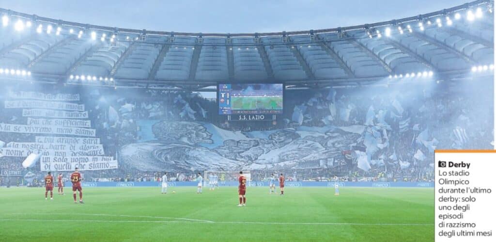 Un’altra domenica di vergogna per le curve di Roma e Lazio, che nell’ultimo weekend si sono rese entrambe protagoniste di cori discriminatori. A distanza di due settimane dal derby, per cui è attesa per oggi la decisione del giudice sportivo in merito ai cori antisemiti cantati dai tifosi laziali (“In Sinagoga vai a pregare, ti farò sempre scappare, romanista vaffa…”). Il rischio concreto è che la Curva Nord venga chiusa sabato prossimo per Lazio-Juventus, anche a seguito della recidiva che pende sulla testa dei tifosi biancocelesti, non nuova a episodi simili. Durante questa stagione, la Curva Nord era stata indagata dopo i cori antisemiti in occasione del derby di andata, con la stessa Curva poi chiusa per un turno in seguito ai “buu” razzisti rivolti a due giocatori di colore del Lecce. Precedenti che non hanno fermato i tifosi della Lazio anche allo stadio Brianteo di Monza, nonostante l’indagine aperta e il rischio chiusura. Secondo il rapporto degli ispettori federali, lo stesso coro antisemita è stato cantato due volte da una parte dei tifosi laziali presenti nel settore ospiti: al 37′ del primo tempo (intonato da circa il 20 per cento del totale) e al 42′ (qui la percentuale refertata si abbassa a circa il 10 per cento). Entrambi i cori sono stati percepiti dai due ispettori posizionati nella zona di campo più vicina al settore ospiti. Nello stesso rapporto è stato segnalato che i tifosi hanno esposto per tutta la partita lo stesso striscione (“Ultras Lazio”) presente solitamente nella Curva Nord dello stadio Olimpico. Un’evidenza di responsabilità che potrebbe aver aggravato la posizione già in bilico di parte del tifo biancoceleste, nonostante la collaborazione della società Lazio, in prima linea nell’individuazione dei responsabili. Seria anche la posizione della Curva Sud romanista. Per il tifo giallorosso è concreto il rischio sanzione dopo il rapporto stilato dagli ispettori presenti domenica all’Olimpico che hanno segnalato un episodio di discriminazione razziale verso l’allenatore della Sampdoria Stankovic ( “sei uno zingaro”), subito dopo l’espulsione di Murillo. Un coro percepito distintamente da tutto lo stadio e da tre funzionari Figc che nel loro rapporto hanno segnalato anche il tentativo (“invano”) di Mourinho di zittirli rivolgendo un gesto verso i propri tifosi. Nessun rischio chiusura per la Curva Sud, ma una recidiva razzista sanzionata con una diffida nel 2021 (per i cori contro Kessié e Ibra) e perpetrata ad ottobre scorso: nella partita di andata coi blucerchiati, a Genova, avevano preso di mira i napoletani. di Marco Juric