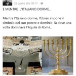«Mentre l’italiano dorme, l’Ebreo impone il simbolo del suo potere e dominio là dove una volta dominava l’Aquila di Roma»