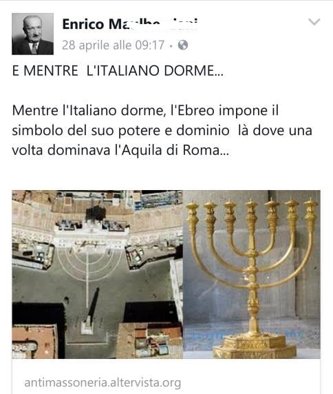 Enrico_Maulberziani Pubblicata il 26 Maggio 2017 alle 484 × 572 in Enrico/Enrichetto M. profilo Facebook antisemita
