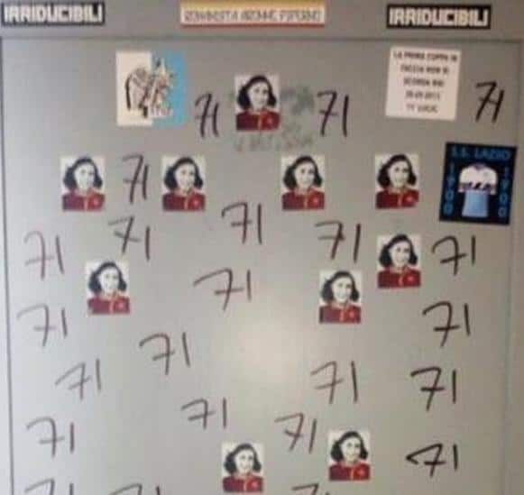 olimpico_adesiviantisemiti Pubblicata il 24 Ottobre 2017 alle 581 × 549 in Episodi di antisemitismo allo stadio Olimpico di Roma in occasione della partita di calcio Lazio – Cagliari
