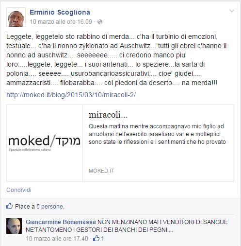 erminio_scogliona_10marzo_contra_RavDellaRocca Pubblicata il 16 Marzo 2015 alle 497 × 506 in “Erminio Scogliona” profilo Facebook antisemita