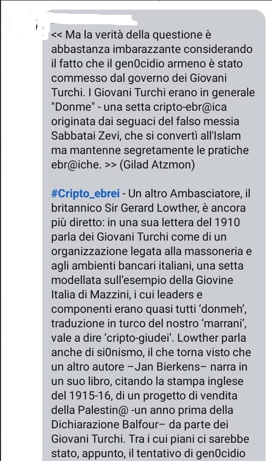Utenti pro pal postano commenti “antisionisti” ibridati con narrative antigiudaiche e complottiste. I “sionisti” vengono tacciati di essere come/peggio dei nazisti, di praticare il genocidio degli arabi che loro, in base alle scritture talmudiche, riterrebbero “animali umani” non meritevoli di esistere. In questi post di odio trovano spazio i più variegati complottismi, tra cui quello che ritiene che i “Giovani turchi” fossero cripto-ebrei e che quindi il massacro degli armeni del 1915 andrebbe attribuito alla incontenibile brama genocida insita negli ebrei.