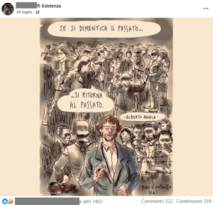 Pagina pro Palestina sulla “R-Esistenza” condivide una vignetta sulla memoria della Shoah e gli utenti paragonano gli ebrei ai nazisti:
