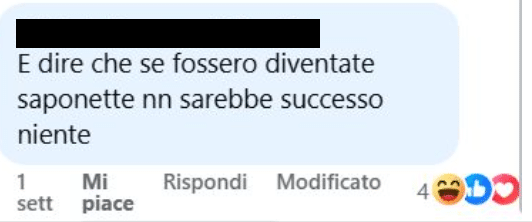 Stampa 19 Novembre 2025 Facebook, banalizzazione della Shoah Luogo: Facebook Fonte: Segnalazione CE “E dire che se fossero diventate saponette non sarebbe successo niente”