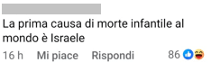 Sotto ad un comunicato di una pagina che parla di Israele gli utenti ripropongono la polemica antisemita dell’accusa del sangue (blood label) negando che esistano degli ostaggi rapiti da Hamas, definiscono i soldati che hanno fermato la Freedom flottiglia “tagliagole”, e un utente scrive “la prima causa di morte infantile al mondo è israele”.
