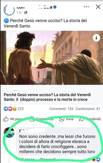 «furono i coloni di allora di religione ebraica a decidere di farlo crocifiggere…sono millenni che decidono sempre tutto loro»