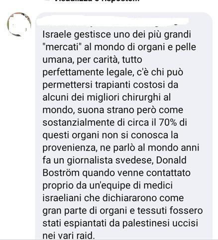 «Israele gestisce uno dei più grandi “mercati” al mondo di organi e pelle umana…»
