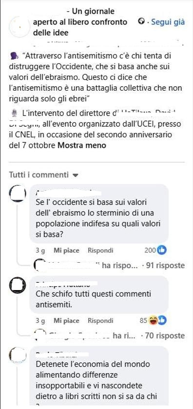 Facebook, commenti antisemiti